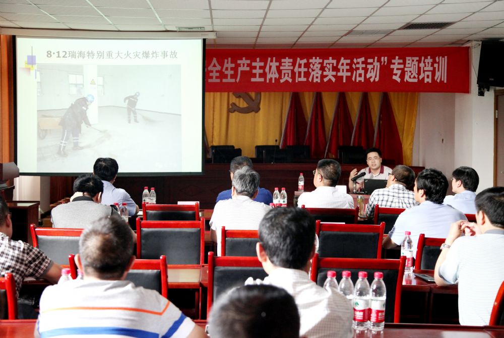 為積極響應集團公司“企業安全生產主體責任落實年活動”號召,按照公司“安全月”活動安排,進一步強化全員安全發展觀念,提升全員安全素質,6月13日上午,公司聘請西安科技大學教授劉紀坤對管理人員進行了落實企業安全生產主體責任專題培訓。公司領導,各單位各部門副科級以上管理人員以及各車間專職安全員共計100余人參加了培訓。