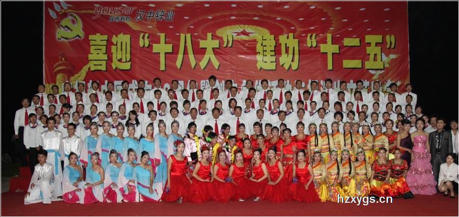 伴著金秋明媚的陽光,迎著十月的云淡風清,我們迎來了中華人民共和國六十三歲華誕。2012年9月26日晚,漢中鋅業公司“慶祝新中國成立63周年,喜迎黨的十八大”創先爭優活動成果匯報暨文藝匯演活動在公司子校操場隆重舉行。全體公司領導與大家一起觀看了晚會。