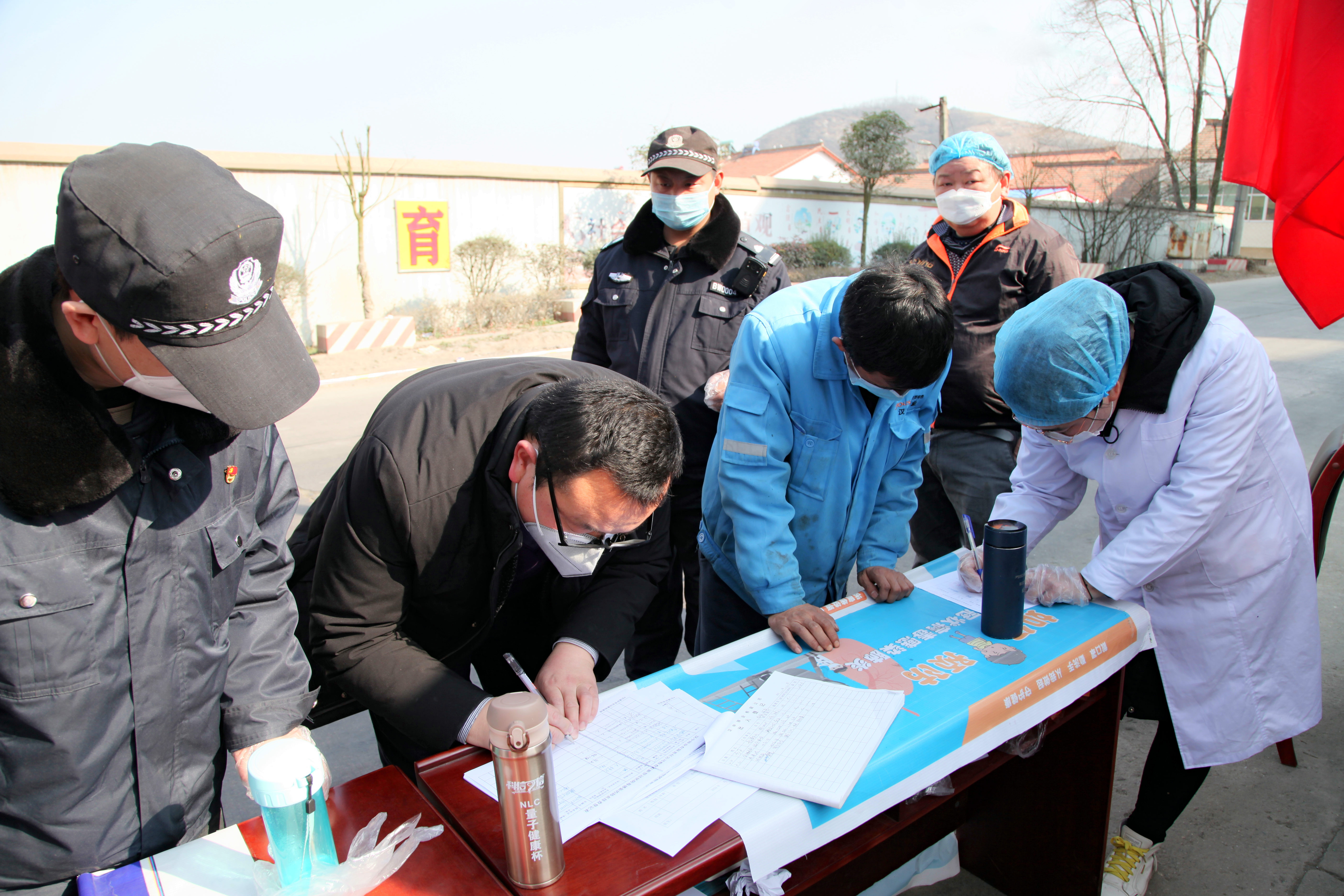 為嚴(yán)防疫情輸入,公司疫情防控辦公室在黃沙橋頭南端公司入口處設(shè)置了疫情監(jiān)測點(diǎn)。監(jiān)測點(diǎn)鮮艷的黨旗高高飄揚(yáng),黨員先鋒崗的牌子格外醒目,堅守在監(jiān)測點(diǎn)的工作人員精神抖擻,全神貫注。由公司保衛(wèi)人員、醫(yī)護(hù)人員和各車間臨時抽調(diào)人員組成的監(jiān)測防控小分隊,不畏嚴(yán)寒,24小時日夜輪流值守,為公司全體職工及家屬筑起了一道牢固的健康防線。